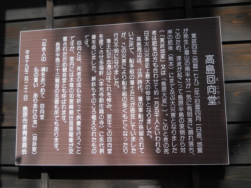 案内板によれば寛政四年(1792年)の島原大変(普賢岳の噴火にともない眉山が崩壊して