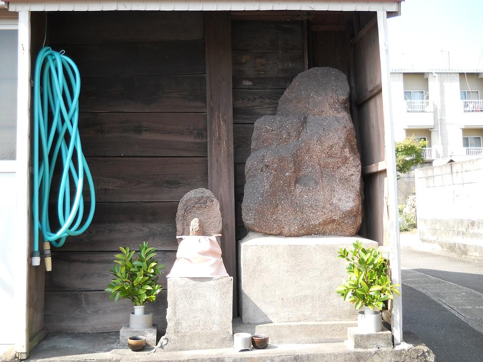 高島回向堂の近くにまつられていた猿田彦と地蔵