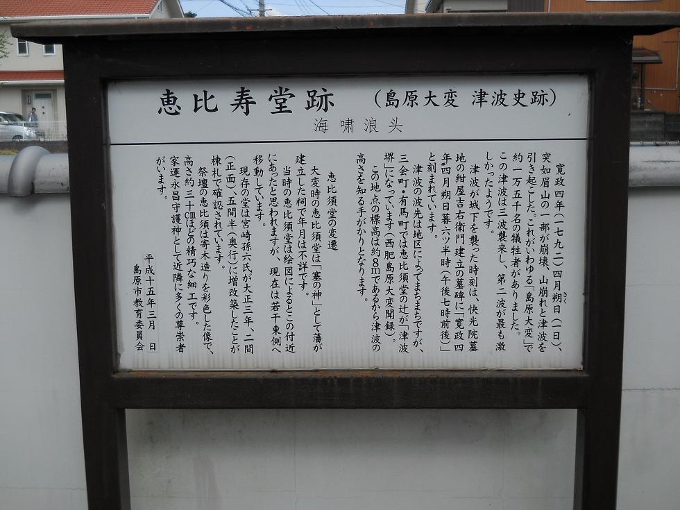 案内板には「大変時の恵比寿堂は塞の神(さいのかみ)として島原藩が建立した祠」とありますので、当時からえびす様道祖神と同じようなまつられかたをしていたようですね。
