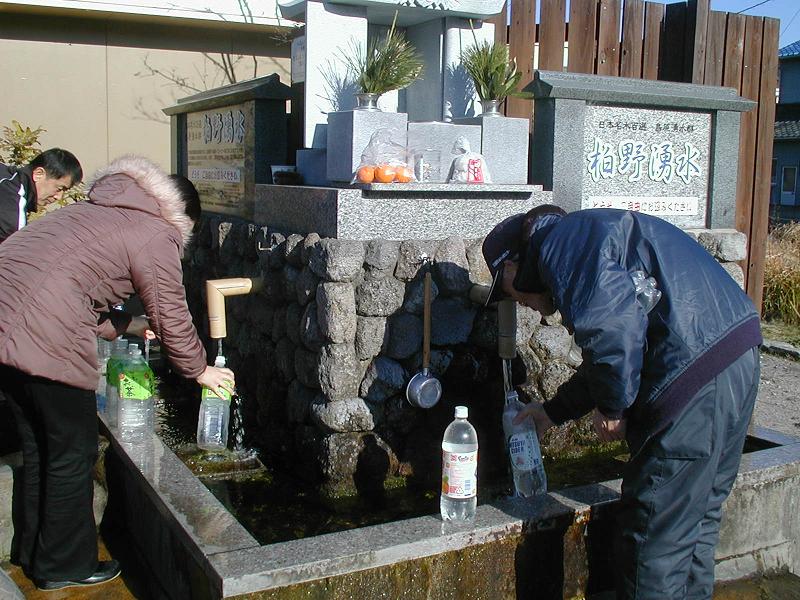島原市内のいたるところにきれいな水が湧き出しており、毎日大勢の人がペットボトルやポリタンクを持って水をくみに来ます。たいてい水の湧き出し口には、水神様や観音様、不動明王などが祀(まつ)られています。車のトランクにたくさんのペットボトルやポリタンクを積んでくみに来る人も多く、家に水道があっても炊事には、こうしてくんで来た湧水しか使わないという家庭も少なくないそうです。長崎や福岡から休みを利用してくみに来る人もいます。