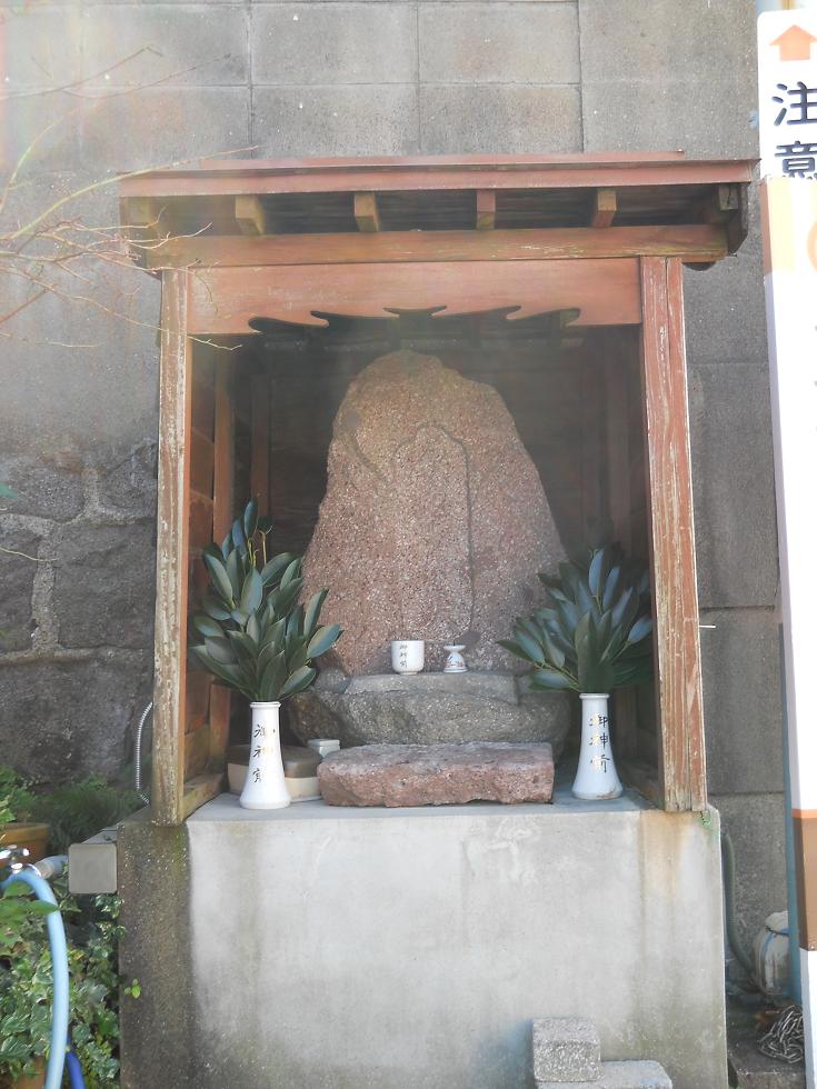 というようなわけで、猿田彦という神様をまつるときには大体東のほうに向けてまつることになってるのかな・・・と。家の北側におかれているのは、おそらく島原半島の地形上、半島から出るには北へ向かわないといけないので、どちらが北か旅人にも分かるように北に統一して設置したのではなかろうかと、こうわたしは考えたわけなんです。